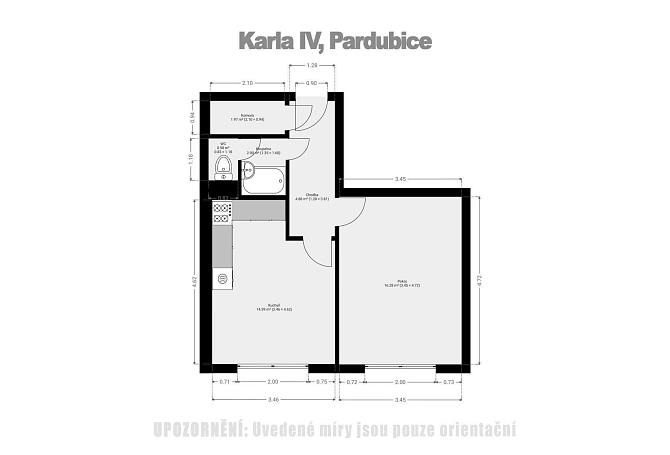 Pronájem bytu 2+kk 40 m², Karla IV., Pardubice-Zelené Předměstí